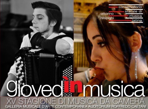 GIOVEDÌ IN MUSICA, XV° Stagione di Musica da camera del Conservatorio Respighi di Latina, vedrà il 19 aprile il debutto del duo Giulia Ciarla, flauto dolce, Umberto Turchi, fisarmonica.