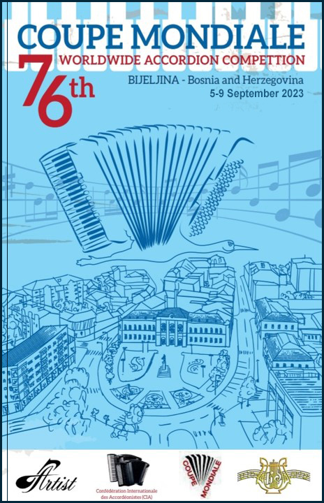 L’Associazione Culturale IAC (Italian Accordion Culture), in collaborazione con le Edizioni Musicali e Discografiche Ars Spoletium, con il patrocinio del Comune di Castelfidardo e del Museo Internazionale della Fisarmonica, indice ed organizza, nel giorno 21 maggio 2023, la selezione dei candidati italiani per la partecipazione alla 76° edizione della Coupe Mondiale CIA (IMC-Unesco) della fisarmonica, che si terrà a Bijeljina (Bosnia Herzegovina) dal 5 al 9 Settembre 2023.