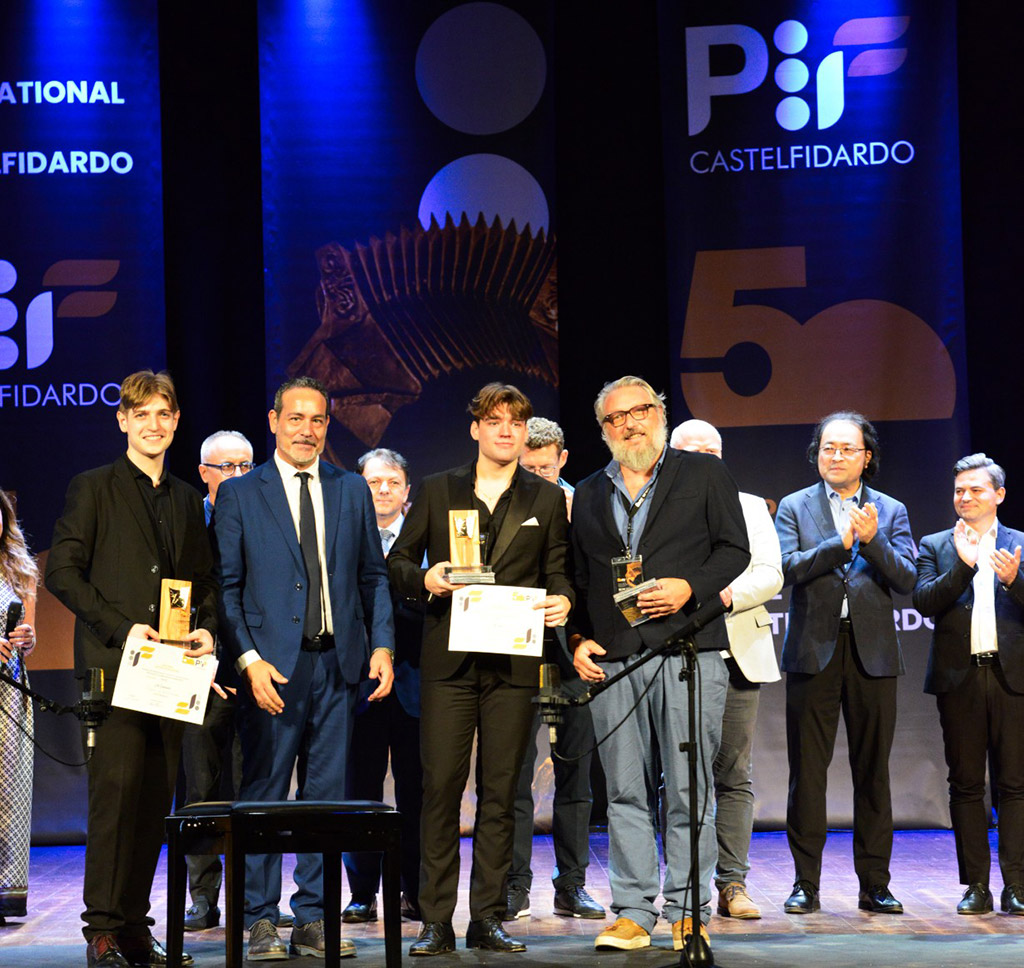La padronanza tecnica e scenica, la sensibilità e la personalità dimostrata, hanno completato l’ascesa dei due giovani che al PIF si erano già distinti in passato in altre categorie: Emanuele Viti, 20 anni di Agnone, allievo del maestro Pietro Roffi, ha sottolineato «l’emozione, l’orgoglio e la responsabilità morale di onorare questa vittoria». Luca Bello, triestino classe 2006, residente a Copenaghen dove studia alla Royal Danish Academy, allievo di Geir Draugsvoll, ha avuto la capacità di gestire un inconveniente tecnico, la rottura di una valvola che ne ha interrotto l’esibizione, conquistando un risultato «frutto di tanto lavoro, impegno e passione». Viti e Bello sono i quinti italiani la cui carriera concertistica spicca il volo dal PIF dopo Massimiliano Pitocco (1988), ieri presidente di giuria che ha testimoniato un livello sempre alto e la crucialità del PIF come «momento di confronto per allievi, maestri e scuole», Claudio Jacomucci (1990), Cesare Chiacchiaretta (1993) e Samuele Telari (2013).