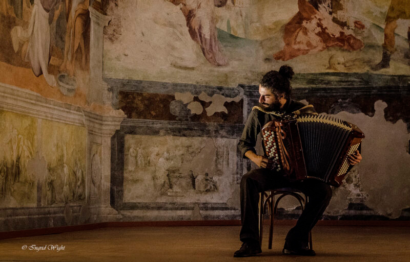 I partecipanti saranno chiamati ad acquisire gli strumenti che stanno alla base di una piena espressione dell’identità artistica personale, a studiare la creatività come elemento su cui poggia l’esecuzione tecnica e mettere alla prova, nella pratica, la propria capacità di costruire e condividere con il pubblico un prodotto artistico originale. Al termine della masterclass gli iscritti eseguiranno un concerto happening all’interno del Festival Quivivo per il quale riceveranno una retribuzione. Quindi, la masterclass non è dedicata al perfezionamento tecnico o interpretativo di brani musicali esistenti, bensì allo studio e alla pratica della composizione di nuova musica, sia scritta che improvvisata. Il lavoro si svolgerà in gruppo e in micro-gruppi che svilupperanno le loro proposte in parallelo. I materiali artistici prodotti confluiranno in un concerto che verrà eseguito per il pubblico del Festival il giorno 4 luglio. Per partecipare occorre saper suonare già la fisarmonica (ognuno secondo il proprio percorso di crescita musicale) e non aver più di 35 anni di età.