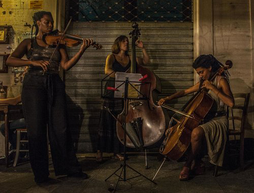 Paesaggi sonori ipnotici, che producono vibrazioni interiori particolarmente forti. Not Living In Fear è la nuova creazione discografica siglata Hear In Now, ardimentosa formazione costituita da Mazz Swift (voce e violino), Tomeka Reid (violoncello) e Silvia Bolognesi (contrabbasso), a cui si aggiunge Dee Alexander (voce in Not Living In Fear, settima traccia del CD) in veste di special guest. Il disco consta di tredici composizioni originali scaturite dall’ubertosa materia grigia di Swift, Bolognesi, Reid e Alexander. Il riff di Cicle (Silvia Bolognesi) è estremamente fascinoso. L’incedere di Silvia Bolognesi è dirompente, arricchito da una cavata profonda e da un suono possente. Terrortoma (Mazz Swift) è un brano di forte impatto. Qui si infittisce un ardente dialogo tra gli archi, che crea momenti di suspense emozionale. Il climax ascetico e crepuscolare di Prayer For Wadud (Tomeka Reid) è assai toccante. Anche in questa composizione regna un interplay simbiotico, denso di pathos. Not Living In Fear è un album decisamente e scientemente trasversale, che pullula di palesi riferimenti al free e all’avant-garde jazz, in cui non mancano sublimi colorazioni cameristiche, dove la componente creativa, dalla prima all’ultima traccia, è sempre presente come punto cardine dell’intero lavoro.