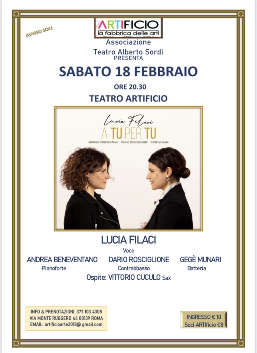 Il teatro Artificio – La Fabbrica delle Arti (Via Monte Ruggero, 44 – Roma), sabato 18 febbraio alle 20:30, sarà la splendida cornice del concerto (ingresso 10 € – 8 € per i soci dell’Artificio) di Lucia Filaci Quartet Feat. Vittorio Cuculo, spumeggiante formazione costituita da Lucia Filaci (voce), Andrea Beneventano (pianoforte), Dario Rosciglione (contrabbasso) e Gegè Munari (batteria), impreziosita dalla presenza di Vittorio Cuculo al sax alto, ospite del live. La giovane cantante jazz e compositrice romana, di origine partenopea, presenterà il suo disco (primo da leader) uscito martedì 29 settembre 2022 per l’etichetta Wow Records di Felice Tazzini e Francesco Pierotti contenente brani originali figli della sua fecondità compositiva congiuntamente ad alcuni standard facenti parte dell’inesauribile tradizione jazzistica. Fra questi spicca Serenade to Sweden, giottesco capolavoro dall’immenso Duke Ellington, (ri)letto in una versione particolarmente creativa anche per l’uso della vocalità lirica. Ad arricchire ancor di più questo progetto discografico, spicca la presenza di ben sette ospiti di grande prestigio del calibro di: Stefano Di Battista (sax alto in Che M’Importa del Mondo), Fabrizio Aiello (percussioni e arrangiamento in Estate sei Mia), Emanuele Urso (clarinetto in Friariello Swing), Vittorio Cuculo (sax alto in My Swing Mood, Noi Siamo il Jazz e Donna Lee), Juan Carlos Albelo (voce e violino in Estate sei Mia), Monica Tenev (flauto in Estate sei Mia) e Tommaso Romeo (voce in Friariello Swing). Gli arrangiamenti dei brani sono opera di Lucia Filaci, Andrea Beneventano, Dario Rosciglione e Gegè Munari, ad esclusione di Estate sei Mia (arrangiamento di Fabrizio Aiello) e Friariello Swing (arrangiamento delle voci di Antonello Paliotti). A Tu per Tu è un disco dal quale si denota un profondo rispetto verso la tradizione del jazz, soprattutto dal punto di vista del linguaggio, con dei marcati richiami anche alla cosiddetta “Swing Era”, ma c’è spazio inoltre per nuance appartenenti al latin jazz brasiliano e all’afro-cuban jazz, che rendono questo album policromatico sotto l’aspetto stilistico. Altro valore aggiunto presente nel CD, le note di copertina di tre figure assai autorevoli del canto jazz come Nicky Nicolai, Susanna Stivali e Joy Garrison. Per ciò che concerne il mood di A Tu per Tu, l’autrice dell’album Lucia Filaci lo presenta così: «A Tu per Tu è il titolo del mio primo lavoro discografico. Ho scelto di intitolarlo così perché ritengo, a partire dalla mia esperienza, che solo guardandosi dentro e accettandosi per ciò che si è come artisti e come individui, ci si possa dare la possibilità di essere quello che si desidera. Questo lavoro, difatti, rappresenta per me un passaggio di vita fondamentale, ossia la scelta di trasformare il mio percorso e la mia vocalità da cantante lirica a cantante jazz. Ma soprattutto accettare che queste componenti possano convivere perfettamente e in equilibrio dentro di me, il tutto coeso con uno stile e un linguaggio musicale come il jazz, un “luogo” dove la creatività è libera di esprimersi. Infatti, in questo progetto discografico ho espresso proprio questo concetto attraverso tutti i mezzi che avevo a disposizione: la melodia, il ritmo e lo stile di ogni brano. Tutti diversi, ma che riconducono a un unico linguaggio, chiaro ed efficace, affinché si potessero creare delle immagini per le storie che ho voluto raccontare. Tassello fondamentale, i musicisti eccezionali con in quali ho condiviso questo disco, che hanno saputo dare forma alle mie idee valorizzandole. Oltre ai miei brani originali, è importante la presenza di uno standard di Duke Ellington (Serenade To Sweden, n.d.r.), un compositore che attraverso la voce della famosa cantante Alice Babs ha saputo offrirmi una risposta alla domanda che mi ponevo da anni: «Può convivere la vocalità lirica in uno standard jazz?» Se siete curiosi, troverete la risposta nel disco». Il concerto di Lucia Filaci Quartet Feat. Vittorio Cuculo rappresenta un’imperdibile occasione per tutti i jazzofili della prima ora di immergersi in un fascinoso viaggio nel jazz mainstream, in cui lo swing regna sempre sovrano.