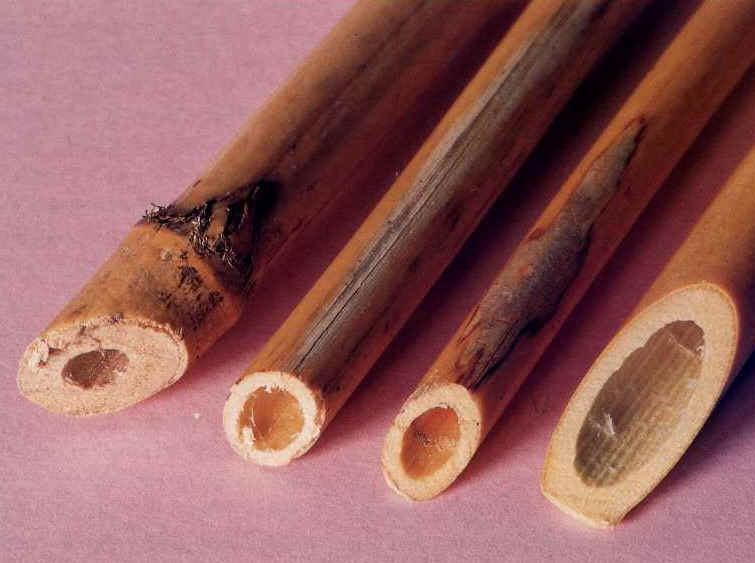 Trovata la perfetta aderenza tra le canne, si sigilla l’innesto del cabizzinu con cera vergine per garantirne la perfetta tenuta e si rinforza esternamente con alcune spire di spago. Il tumbu, non avendo fori per le dita, produce, ovviamente, un unico suono che rappresenta la tonica, o nota fondamentale dello strumento. Una volta costruito, l’intonazione può essere modificata unicamente appesantendo l’ancia con un grumo di cera o accorciando la lunghezza della canna. La canna del tumbu dev’essere dritta e sottile; una canna di grosso spessore risulterebbe oltremodo pesante negli strumenti di grandi dimensioni, sbilanciandoli in avanti. Per la mancosedda, e, soprattutto, per la mancosa, si ricerca, invece, una canna di spessore molto grosso con una luce interna estremamente ridotta (canna ’e Saddori o canna mascu), che cresce in una zona ben circoscritta dell’Isola, grosso modo tra Barumini, Sanluri e Samatzai. Questa canna è estremamente resistente, ma, allo stesso tempo, presenta un canneggio molto stretto che conferisce un particolare timbro allo strumento. La mancosa è la seconda canna, costruita in un unico pezzo con cinque fori rettangolari nella parete anteriore. I primi quattro partendo dall’alto sono i fori per le dita (crais), l’ultimo in basso, più lungo degli altri, è chiamato s’arrefinu o bentiadori e serve per accordare lo strumento. Aggiungendo o togliendo della cera vergine nella parte superiore di questo foro, si può, infatti, allungare o accorciare la colonna d’aria vibrante nel tubo con il conseguente abbassamento o innalzamento dell’intonazione. È facilmente immaginabile che la porzione di canna che si trova più in basso de s’arrefinu sia ininfluente per l’intonazione dello strumento, ma questa porzione di canna, secondo i costruttori, contribuisce ad arricchirne il timbro e a migliorarne la sonorità. L’estremità superiore della mancosa, dove s’innesta la cannuccia dell’ancia, è simile a quella del tumbu con il bordo rinforzato dallo spago impeciato. La posizione e la distanza dei fori per le dita è proporzionale al taglio dello strumento: più è grave, più sono distanziati e viceversa.