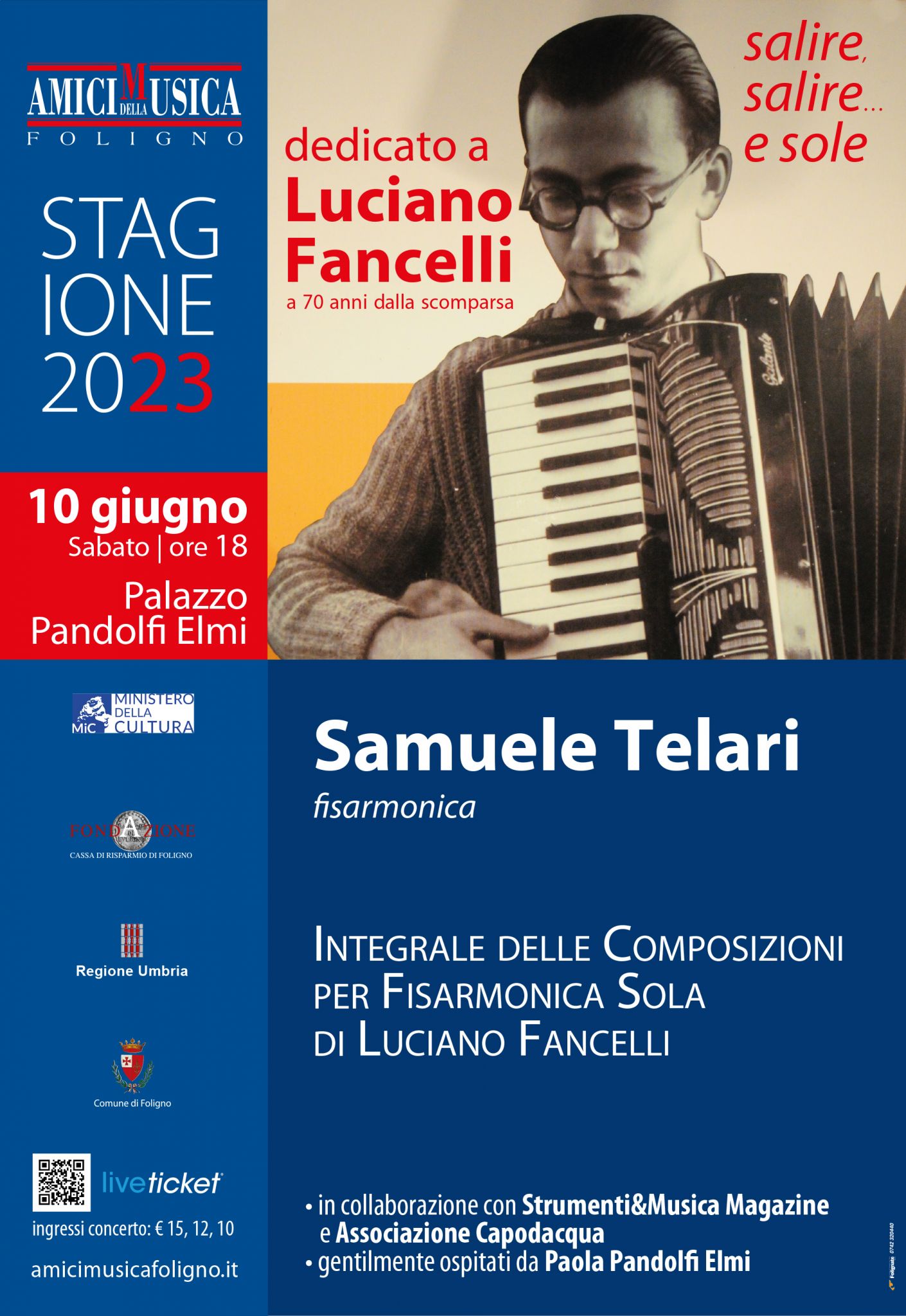Una “due giorni” dedicata a Luciano Fancelli, quella che gli Amici della Musica di Foligno, in collaborazione con il nostro giornale e con l’Associazione Capodacqua, hanno organizzato nel ricco programma concertistico proposto nell’ambito della stagione 2023. Nel 70° anniversario della prematura scomparsa del celebre musicista, Foligno e il piccolo borgo di Capodacqua vogliono omaggiare uno dei più celebri pionieri dello strumento a mantice che, tra le colline della Città della Quintana, ha vissuto la sua infanzia e ha scritto pagine indimenticabili del repertorio fisarmonicistico contemporaneo.