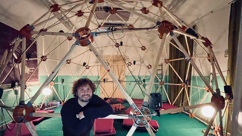 Le due giornate precedenti sono state dedicate alle prove e, se ho fatto tutto bene, manterrò la promessa fattami prima di iniziare: accompagnare il pubblico in un nuovo attraversamento sonoro. Grazie alla cupola di altoparlanti Ambisonics posso gestire la musica all’interno di uno spazio tridimensionale che circonda gli ascoltatori, immergendoli in un cielo stellato popolato di suoni vicini e lontani, come stelle e pianeti da ammirare attraverso l’ascolto.