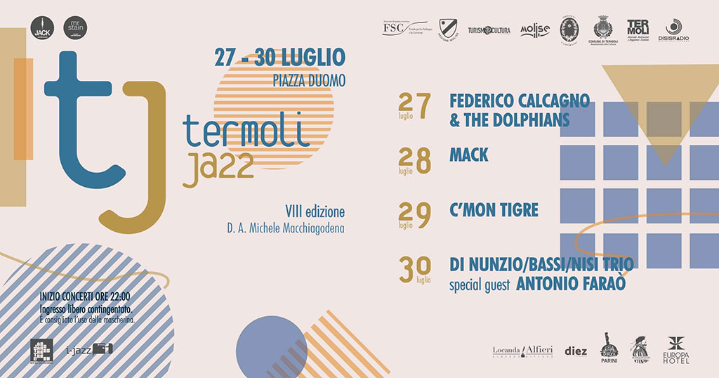 Cresce la trepidante attesa per l’ottava edizione di Termoli Jazz, prestigioso festival organizzato dall’Associazione Culturale Jack con Michele Macchiagodena nel ruolo di presidente e direttore artistico di una rassegna che rappresenta il fiore all’occhiello in primis della città di Termoli – ma anche – più in generale – del Molise. Piazza Duomo sarà la venue dei quattro concerti che avranno inizio alle 22:00, tutti a ingresso libero contingentato. I riflettori si accenderanno mercoledì 27 luglio con Federico Calcagno & The Dolphians, intraprendente sestetto diretto da Federico Calcagno (clarinetto soprano e clarinetto basso), definito «Nuovo alfiere del jazz italiano ed europeo» dal famoso web magazine All About Jazz Italia, affiancato da cinque fulgidi talenti come Luca Ceribelli (sax soprano e sax tenore), Gianluca Zanello (sax alto), Andrea Mellace (vibrafono), Stefano Zambon (contrabbasso) e Stefano Grasso (batteria). Questa formazione renderà omaggio al leggendario polistrumentista e compositore statunitense Eric Dolphy attraverso composizioni originali di Calcagno, fra cui alcune completamente inedite, in un live tra hard-bop, free, creative music, world music e hip hop. Si proseguirà giovedì con i Mack, un trio assai trasversale e singolare composto da musicisti estremamente creativi come Federico Squassabia (tastiere), Marco Frattini (batteria) e Mattia “Matta” Dallara (elettronica). Gruppo che ha riscosso un notevole successo anche fuori dall’Italia, soprattutto in Nordamerica, proporrà un repertorio di brani originali improntati su un’accattivante commistione comprendente hip hop, funk, jazz, neo-soul ed elettronica. Venerdì saliranno sul palco i C’mon Tigre (voce, chitarra ed elettronica) insieme a quattro eccellenti compagni di viaggio: Mirko Cisilino (tromba, flicorno ed elettronica), Beppe Scardino (sassofoni ed elettronica), Pasquale Mirra (vibrafono) e Marco Frattini (batteria). Progetto figlio di una particolare simbiosi fra Visual Art e musica, i C’mon Tigre hanno ottenuto parecchi consensi anche all’estero, ad esempio in Danimarca, Francia, Olanda – e presenteranno composizioni che abbracciano generi quali afro-jazz, hip hop, funk, dance e colorazioni di musica mediterranea, ma con lo spirito del jazz sempre pronto ad aleggiare. Sabato 30, invece, calerà il sipario con una formazione d’eccezione: Di Nunzio/Bassi/Nisi Trio Special Guest Antonio Faraò, formidabile quartetto costituito da Luigi Di Nunzio (sax alto), Giuseppe Bassi (contrabbasso), Marcello Nisi (batteria) e dall’eccezionale ospite Antonio Faraò (pianoforte), pupillo di Herbie Hancock. Dunque, tre jazzisti dall’inestimabile valore più la presenza di una vera e propria star del jazz italiano come Faraò, riconosciuto e apprezzato sulla scena jazzistica internazionale da oltre vent’anni per le sue qualità artistiche di pregevole fattura. Composizioni originali di Antonio Faraò e alcuni standard della tradizione jazz (ri)arrangiati fanno parte della scaletta di quest’ultimo concerto. In particolar modo grazie alla lungimiranza e alla perseveranza del direttore artistico Michele Macchiagodena, Termoli Jazz si prefigge il nobile obiettivo di divulgare questo genere musicale – in continua evoluzione – in tutte le sue svariate forme, nel segno della contaminazione, del melting pot stilistico, come la storia ultracentenaria del jazz insegna, oltre a valorizzare i giovani leoni del panorama nazionale che meritano di calcare palcoscenici importanti proprio come quello del festival termolese.