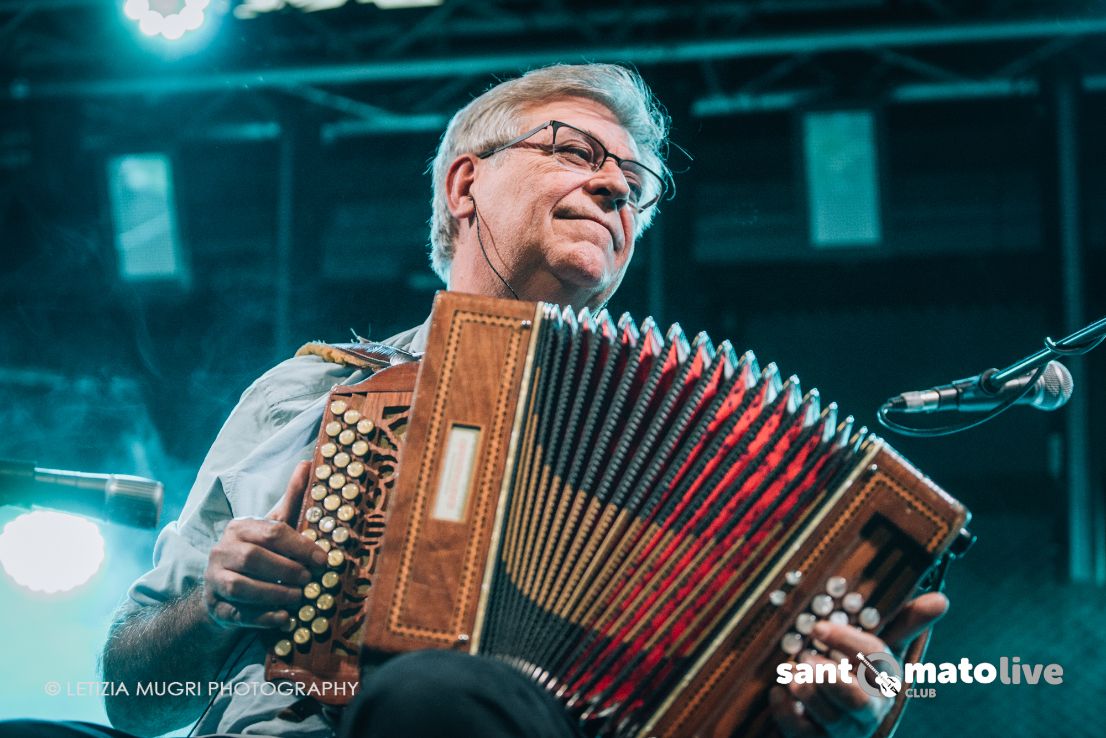 Un messaggio artistico aggregante nel segno di una summa stilistica che abbraccia folk, musica etnica e world music, comunicato attraverso una genuinità disarmante, trasmesso con una generosità dal forte impatto emozionale. La Giusta Distanza è la nuova fatica discografica di Riccardo Tesi, uno fra i più autorevoli specialisti dell’organetto diatonico in ambito internazionale. Per la realizzazione di questo album si è avvalso della fondamentale collaborazione del suo Elastic Trio, interessante formazione dallo spirito mediterraneo che vede Vieri Sturlini alla chitarra e al mandolino e Francesco Savoretti alle percussioni. Oltre a questi due formidabili compagni di avventure musicali, ecco una foltissima schiera composta da ben ventuno ospiti che impreziosiscono ulteriormente il CD: Ginevra Di Marco (voce), Maria Pierantoni Giua (voce), Massimo Donno (voce), Eleonora Pascarelli (voce), Isacco Burchietti (violino e viola), Alessandro Natali (violoncello), Marco Ambrosini (nychelharpa), Nico Gori (clarinetto), Vincent Boniface (cornamusa), Claudio Carboni (sax soprano), Andrea Salvadori (tsouras), Francesco Giusta (ghironda), Ziad Tablesi (oud), Andrea Piccioni (marranzano, zarb, tamburello e daf), Gigi Biolcati (gigitarra e cajon), Daniele Biagini (pianoforte), Massimo Tagliata (tastiere), Mirco Capecchi (contrabbasso), Silvano Lobino (basso), Giacomo Tongiani (marimba) e Stefano Melone (programmazione archi). Il disco si presenta con dodici brani, di cui soltanto Ballata di una Madre è una (ri)lettura di un pezzo autografato da Eugenio Bennato, mentre le restanti undici composizioni sono tutte farina del sacco di Riccardo Tesi, alcune di queste cofirmate insieme a Massimo Donno (Sotto la Cenere), Daniele Biagini (La Bella Stagione e Tema di Cristina) e Maria Pierantoni Giua (Mex Moon), ma tutte arrangiate dall’autore di questa nuova creatura discografica. Musicista che fa della poliedricità uno dei tratti distintivi più significativi della sua cifra stilistica, Riccardo Tesi è un organettista che gode della stima del pubblico e degli addetti ai lavori a tutte le latitudini. Nel suo personale stile, frutto di una profonda ricerca intrapresa quarantacinque anni fa, confluiscono folk, musica italiana, basca, inglese, francese, malgascia, jazz e canzone d’autore, permettendogli di creare una fascinosa simbiosi che coniuga la tradizione dell’organetto con l’innovazione. Nell’arco della sua longeva carriera stringe importanti collaborazioni che testimoniano il suo interessante eclettismo stilistico, tanto da condividere studio di registrazione e palco con nomi altisonanti della musica italiana e internazionale, fra i quali: Patrick Vaillant, Gianluigi Trovesi, Gabriele Mirabassi, Alfio Antico, Maria Pia De Vito, Daniele Sepe, Banda Osiris, Piero Pelù, Ivano Fossati, Fabrizio De Andrè, Ornella Vanoni, Gianmaria Testa, Giorgio Gaber, Carmen Consoli, Tosca, Cristina Donà. Presente in bel oltre cento produzioni discografiche, da leader e sideman, è molto attivo in contesti teatrali e cinematografici sia come esecutore che in qualità di compositore. Oltre a vincere una sfilza impressionante di premi, è impegnato in campo didattico da quarantatré anni. Tornando invece alla sua discografia, La Giusta Distanza è il progetto discografico fresco di stampa di cui lui è leader. Santiago è una composizione dal mood evocativo e dal ritmo incalzante, in cui sono presenti gli ospiti Nico Gori al clarinetto e Mirco Capecchi al contrabbasso. Il fugace intervento del clarinettista è godibile, blueseggiante. Valzer d’Aprile è un brano carezzevole, distensivo, in cui gli ospiti sono Alessandro Natali al violoncello, Daniele Biagini al pianoforte e Mirco Capecchi al contrabbasso. Qui Riccardo Tesi interpreta il brano con gusto e notevole efficacia comunicativa. L’atmosfera arabeggiante di Couscous e Fasol rende la composizione ipnotica. Ziad Tablesi all’oud e Massimo Tagliata alle tastiere i guest presenti. L’organetto di Tesi si fonde amabilmente con l’oud di Tablesi, dando vita a inebrianti sonorità speziate. Tema di Cristina è un brano struggente, che alza sensibilmente il livello della temperatura misurato dal termometro emozionale. Insieme a Daniele Biagini al pianoforte, l’organettista dipinge paesaggi sonori eterei, attraverso un abbacinante e ammantante lirismo che lascia il segno. Animato da un profondo spirito mediterraneo, La Giusta Distanza è un disco concepito nel segno del multiculturalismo musicale, in cui Riccardo Tesi è un lodevole tessitore di trame che descrive il suo senso estetico a cuore aperto, infuocato di ardente passione, che riesce a manifestare con toccante naturalezza e sensibilità.