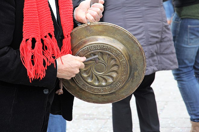 Sempre e ovunque, nella storia dell’umanità, la mancanza di cantanti o musicisti nel villaggio ha fatto sorgere nuove tipologie di fonti sonore e nuove figure di musicisti per far muovere a tempo i piedi dei danzatori. Si potrebbe giungere ad affermare che proprio il sacrestano possa essere stato colui che, avendo la possibilità di avere fra le mani un bel piatto di buon metallo risonante, abbia iniziato a percuoterlo a ritmo di danza con quello che aveva a portata di mano, probabilmente una delle chiavi di cui era in possesso, salvo poi cederlo ad altri musicalmente più dotati, col beneplacito del canonico. Quando ciò abbia avuto inizio è difficile a dirsi con esattezza: l’utilizzo profano degli elemosinieri come strumenti musicali è avvenuto intorno alla metà del XV secolo, ma solamente con quelli in ottone, dal suono simile a quello del bronzo delle campane.