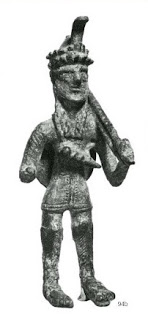 Su corru marinu - Suonatore di Corru marinu di GenoniUn’altra testimonianza dell’utilizzo di questo strumento ci può essere data osservando la statuina del Bronzetto “Suonatore de corru marinu di Teti” (Nuoro). Il Prof. Liliu, descrivendo il bronzetto, parla dell’oggetto appeso al collo tramite una cordicella di pelle e sostiene che queste scanalature potrebbero verosimilmente essere quelle della superficie di una conchiglia (in questo caso “Su corru marinu”).