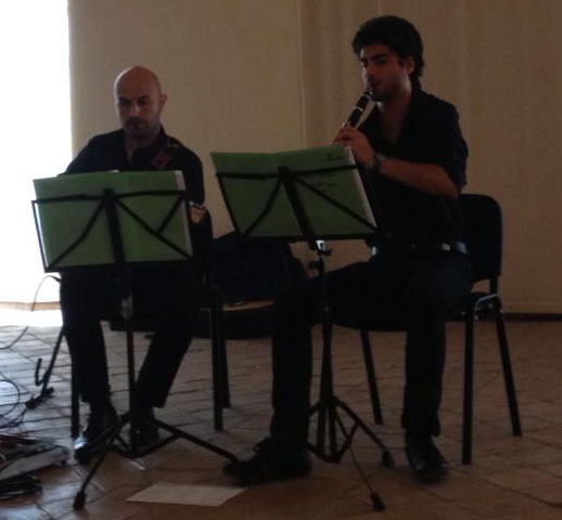 Si tratta di Matteo Consoli, primo clarinetto dell’Orchestra Popolare a Colori di Genazzano, che possiede al suo attivo la composizione di numerose colonne sonore per produzioni cinematografiche e teatrali, e di Antonio Spaziano, chitarrista diplomato al conservatorio “L. Perosi” di Campobasso, specializzato in discipline musicali ad indirizzo interpretativo e compositivo, ora docente in un liceo musicale di Ancona.