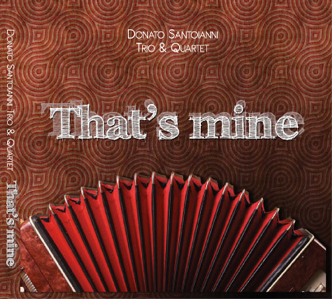 La band Donato Santoianni Trio&Quartet, molto conosciuta soprattutto nel Sud Italia dove negli ultimi 5 anni si è proposta con una serie di apprezzatissimi concerti, presenta la prima produzione discografica denominata “That’s mine”. Il CD è il frutto di un lungo precorso che vede per protagonista la fisarmonica di Santoianni. La piccola formazione tutta molisana, che recentemente ha inserito in organico anche un batterista/percussionista, sin dai primi passi ha cercato di mettere in evidenza le sonorità e l’espressività tipiche della fisarmonica nel tentativo di sfatare l’immagine di strumento da sagra paesana o da balera. I quattro elementi che formano il gruppo (Donato Santoianni-fisarmonica, Gianni Clemente-chitarre, William Trivelli-contrabasso e Tonino Conte-batteria e percussioni), hanno esperienze musicali diverse che vanno dal Tango, alla Bossa nova, dal Jazz al Pop che si fondono nelle undici tracce dell’album e in un repertorio che combina i vari stili. Da segnalare, inoltre, l’ascolto dei tre inediti composti e arrangiati dal leader del gruppo Donato Santoianni la cui verve artistica è influenzata dai successi di alcuni grandi artisti tra cui Richard Galliano, Astor Piazzolla, Duke Ellington e Nicola Piovani.