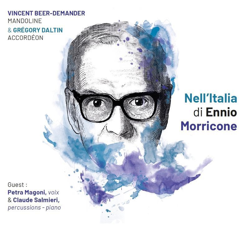 Ennio Morricone è un’istituzione della musica mondiale, non solo un orgoglio per l’Italia, ma una figura iconica per i musicisti di tutto il globo. Svariati i tributi dedicati al compianto maestro, con diverse formazioni, ma in questo caso è il duo francese composto da Vincent Beer-Demander (mandolino, voce in A la Calabrese) e Grégory Daltin (fisarmonica) a rendergli calorosamente omaggio con una nuova opera discografica dal titolo Nell’Italia di Ennio Morricone. Quindici i brani di cui consta la tracklist: Viaggio, Variazioni da un Tema Sereno, Regalo di Nozze, Hundred Yark Dash, La Storia Vera della Signora delle Camelie (Preludio), Serenata Passacaglia, Canone Inverso e C’era una Volta il West sono pietre miliari figlie dell’ispirata e ubertosa vena compositiva di Morricone, mentre Il Padrino (Nino Rota-Christian Gaubert), A la Calabrese – Hommage à Ennio Morricone (François Rossé), Umoresca (Richard Galliano), Tango Cromatico per il Maestro – Hommage à Ennio Morricone (Régis Campo), Santo Luca (Grégory Daltin), Valse di Roma (Claude Salmieri) e Preludio e Danza – In Memoriam Ennio Morricone (Vincent Beer-Demander) completano l’album. A impreziosire questo lavoro discografico, due ospiti d’eccellenza: Claude Salmieri (pianoforte in Valse di Roma, percussioni in A la Calabrese), pianista, batterista, percussionista, compositore e arrangiatore transalpino di caratura internazionale e Petra Magoni (voce in C’era una Volta il West), una fra le cantanti italiane più estrose, eclettiche e comunicative degli ultimi vent’anni. Dal fraseggio verace, fluido, in possesso di una tecnica impeccabile congiuntamente a un’abbagliante espressività, Vincent Beer-Demander è uno fra i mandolinisti più blasonati in ambito mondiale. Nell’arco della sua carriera stringe numerose collaborazioni di prestigio al fianco di musicisti quali Vladimir Cosma, Richard Galliano, Lalo Schiffrin, Claude Bolling, Francis Lai, Ricardo Sandoval, Leo Brower, Hamilton de Holanda, soltanto per menzionarne alcuni. Grazie al suo fulgido talento si esibisce in tutto il mondo, in Paesi quali Italia, Germania, Stati Uniti, Giappone, Colombia, Cina, Israele, Portogallo, Russia, Inghilterra, Ungheria e non solo. Venendo alla sua discografia, fra le varie produzioni, Nell’Italia di Ennio Morricone è un album recentemente pubblicato. Grégory Daltin è uno fra i fisarmonicisti più apprezzati a livello internazionale. Il suo tocco, la gestione della dinamica, le colorazioni timbriche e la fervida immaginazione armonica rappresentano i segni particolari della sua carta d’identità artistica. Nel corso della sua attività professionale calca il palco e condivide lo studio di registrazione con molti artisti di rango nazionale e mondiale come Michel Godard, Richard Galliano, Paolo Fresu, Marco Bardoscia, Didier Labbé, Michel Becquet, Daniel Lassalle, Stéphane Labeyrie, Vladimir Cosma, Jean-Claude Petit, Jean-Claude Vannier e tantissimi altri ancora. Le sue qualità lo portano a tenere concerti in tutti i continenti, in nazioni quali Spagna, Italia, Belgio, Sudafrica, Madagascar, Guyana Francese, Marocco, Turchia, Isola della Riunione, Senegal, Giappone. Fra i suoi venti dischi circa, Nell’Italia di Ennio Morricone lo vede protagonista da co-leader assieme a Vincent Beer-Demander. Il mood tensivo di Regalo di Nozze crea uno stato di suspense, soprattutto grazie alle inebrianti asperità armoniche cesellate dal mandolinista e dal fisarmonicista, brillanti anche in alcuni crescendo e decrescendo che alzano sensibilmente la temperatura misurata dal termometro emozionale. Qui Beer-Demander e Daltin dialogano concependo dinamiche di pregevole fattura e dissonanze particolarmente intriganti. Il Padrino rappresenta un mirabile esempio delle doti narrative e descrittive di Vincent Beer-Demander e Grégory Daltin, autori di alcune sostituzioni armoniche estremamente interessanti, carezzevoli nella loro interpretazione. L’impatto di A la Calabrese è devastante, specialmente a livello sonoro. Qui il fisarmonicista e il mandolinista, incalzati dallo stimolante manto ritmico tessuto alle percussioni da Claude Salmieri, dialogano fittamente dando vita a quadri melodici, armonici e timbrici elettrizzanti, anche qui il tutto arricchito da progressioni, cromatismi e spigolosità armoniche vibranti. Il clima di Umoresca è esotico, enfatizzato dalle corde di Beer-Demander e dal mantice di Daltin. In questa composizione, sulle intense linee melodiche costruite dal mandolinista, il fisarmonicista dà vita a un comping orchestrale, denso di nuance timbriche e notevoli escursioni nella dinamica. In Santo Luca si respira un’atmosfera mediterranea. L’eloquio di entrambi è animato da una palpabile focosità comunicativa, sempre supportato da un totale controllo del proprio strumento. Valse di Roma è una composizione struggente, avvolta in un senso di mestizia, vena elegiaca amplificata in maniera particolare dalle pennellate soulful di Grégory Daltin e dalle toccanti corde di Vincent Beer-Demander. Preludio e Danza – In Memoriam Ennio Morricone è un brano immerso in uno stato di suspense sottolineato dalla simbiosi del duo, che crea dipinti armonici intrisi di pathos. C’era una Volta il West, gemma preziosa dell’indimenticato Ennio Morricone, è interpretata da Petra Magoni in modo personale, singolare. Lei sfrutta brillantemente la dinamica e attinge alla sua ricca palette timbrica, attraverso cui crea paesaggi sonori di grande profondità espressiva. Nell’Italia di Ennio Morricone è un vero e proprio ritratto dedicato al maestro. Un atto d’amore vissuto e manifestato con grazia, candore d’animo, alto senso estetico e spirito immaginativo. Un arazzo di suoni e note attraverso cui mettere a nudo il proprio stato d’animo, spesso cangiante. Un tributo, ornato dai luminosi arrangiamenti di Vincent Beer-Demander e Grégory Daltin, che lascia un segno tangibile.